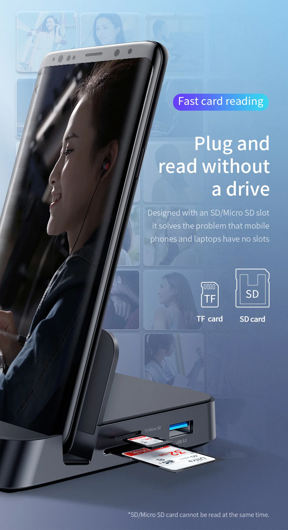 Designed with an SD/Micro SD slot it solves the problem that mobile phones and laptops have no slots
