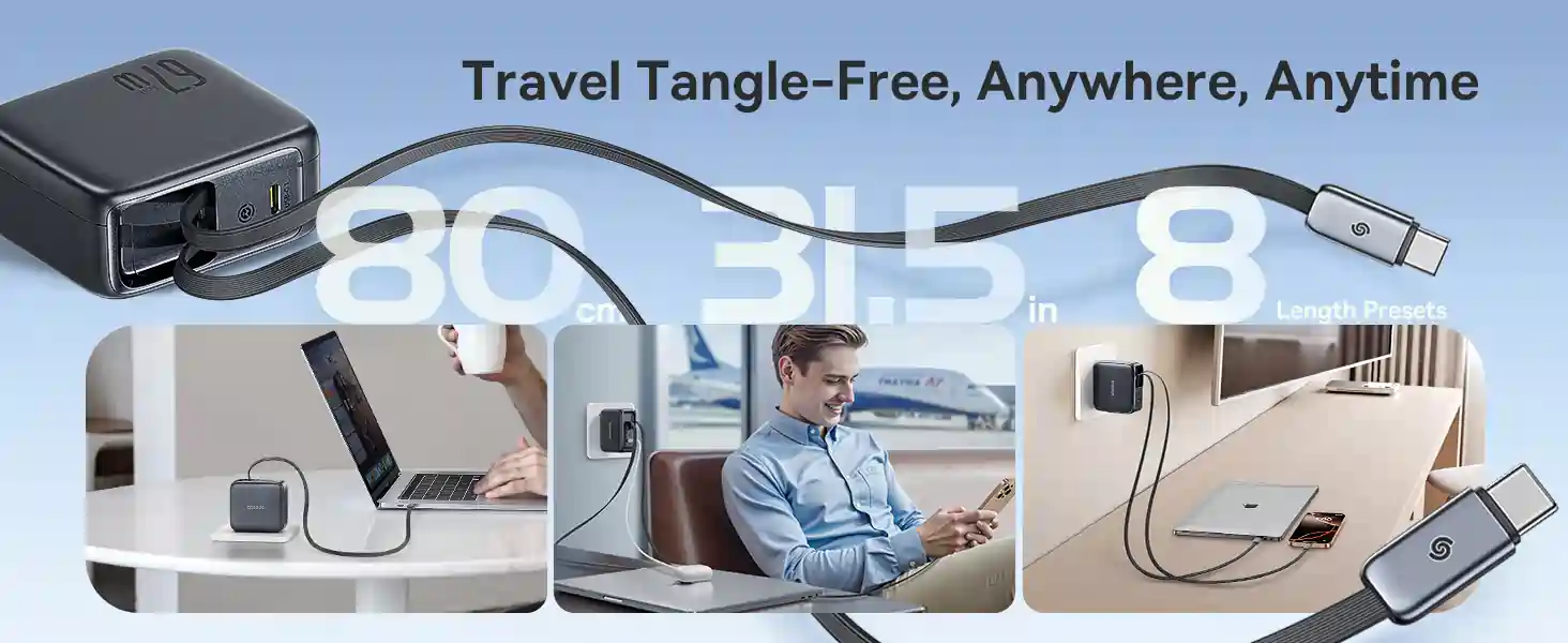 Baseus EnerCore CJ21 Fast Charger with Dual Retractable Cables 3C 67W US JP