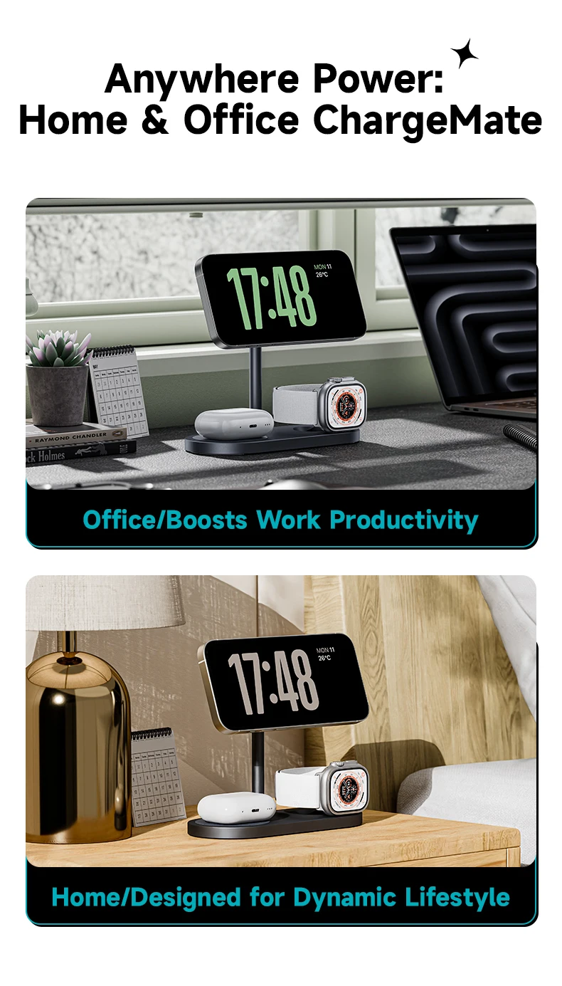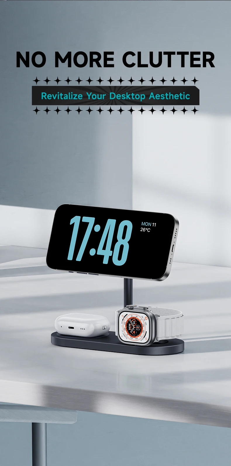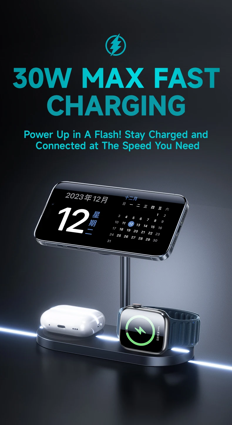 Strong Magnetic Connection: The charger features a secure magnetic connection, ensuring your devices stay in place during charging.