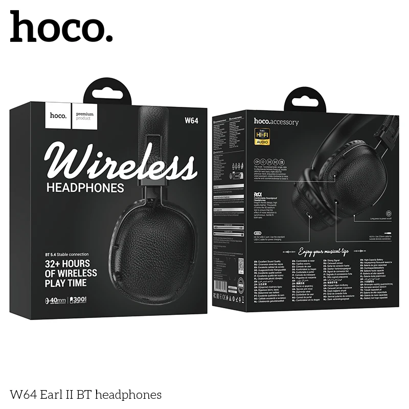Hoco W64 Earl II Wireless Bluetooth Headphones – Black