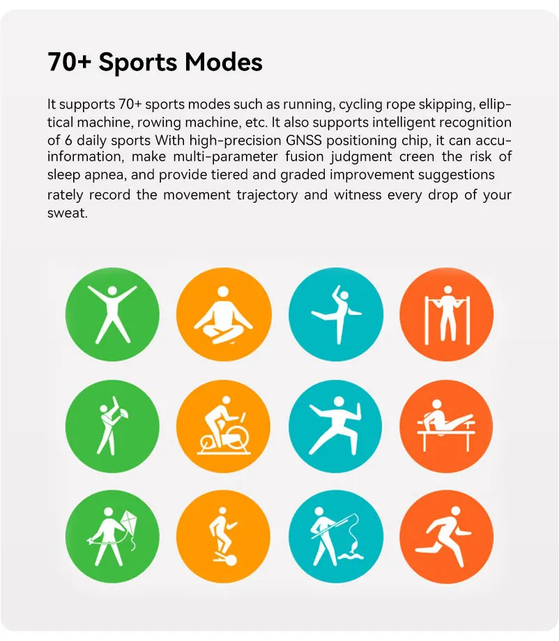 Healthy Living Plan. Daily recording tasks cover a wide range of lifestyle issues including blood pressure, heart rate, sleep tracking, SpO2, 24/7 stress monitoring, skin detection as well as 70+ workout modes, making a healthy living a seemingly automatic routine