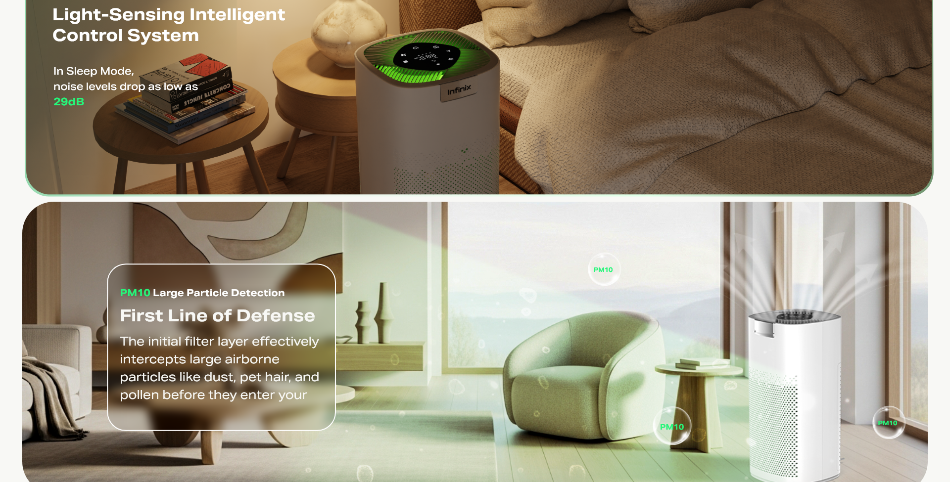 - Smart Sensors: Real-time PM2.5 monitoring that displays air quality through a clear digital interface.
