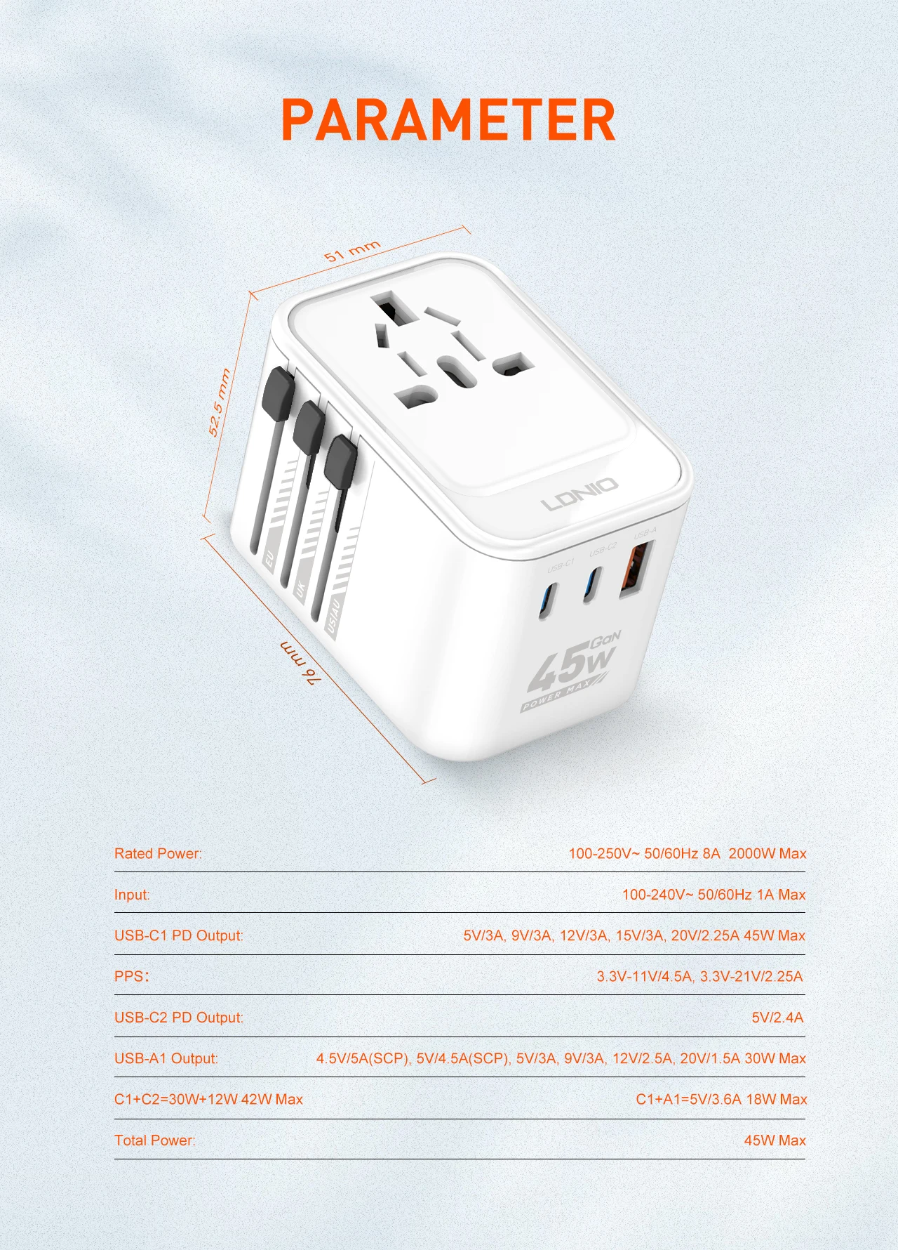 Ldnio 45W GaN Travel Adapter Z8