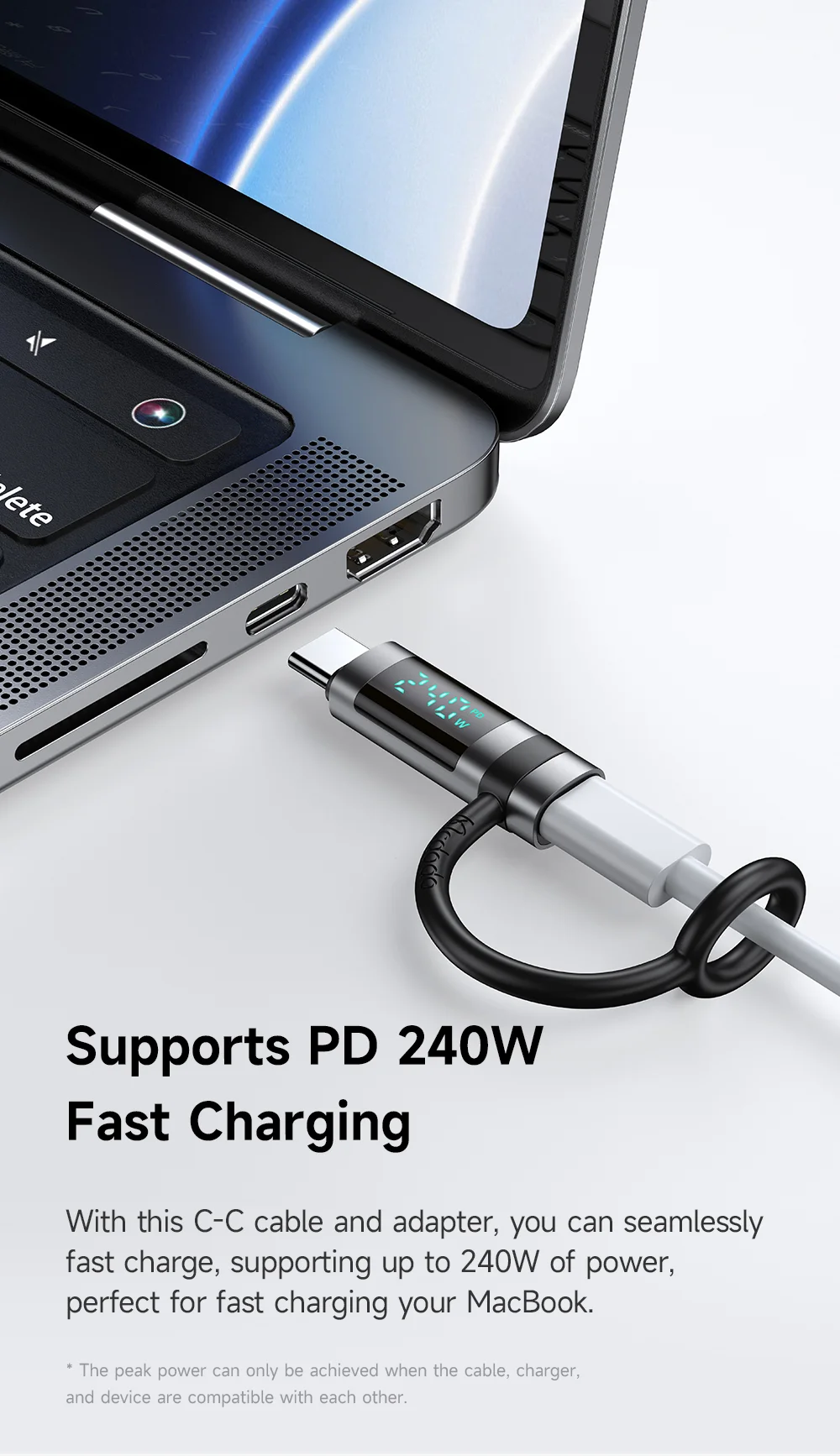 240W PD Fast Charging: Supports up to 240W power delivery, charging devices like your iPhone 15 Pro to 60% in just 30 minutes. Save time with high-speed charging for laptops, tablets, and smartphones.