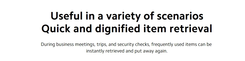 During business meetings, trips, and security checks, frequently used items can be instantly retrieved and put away again.