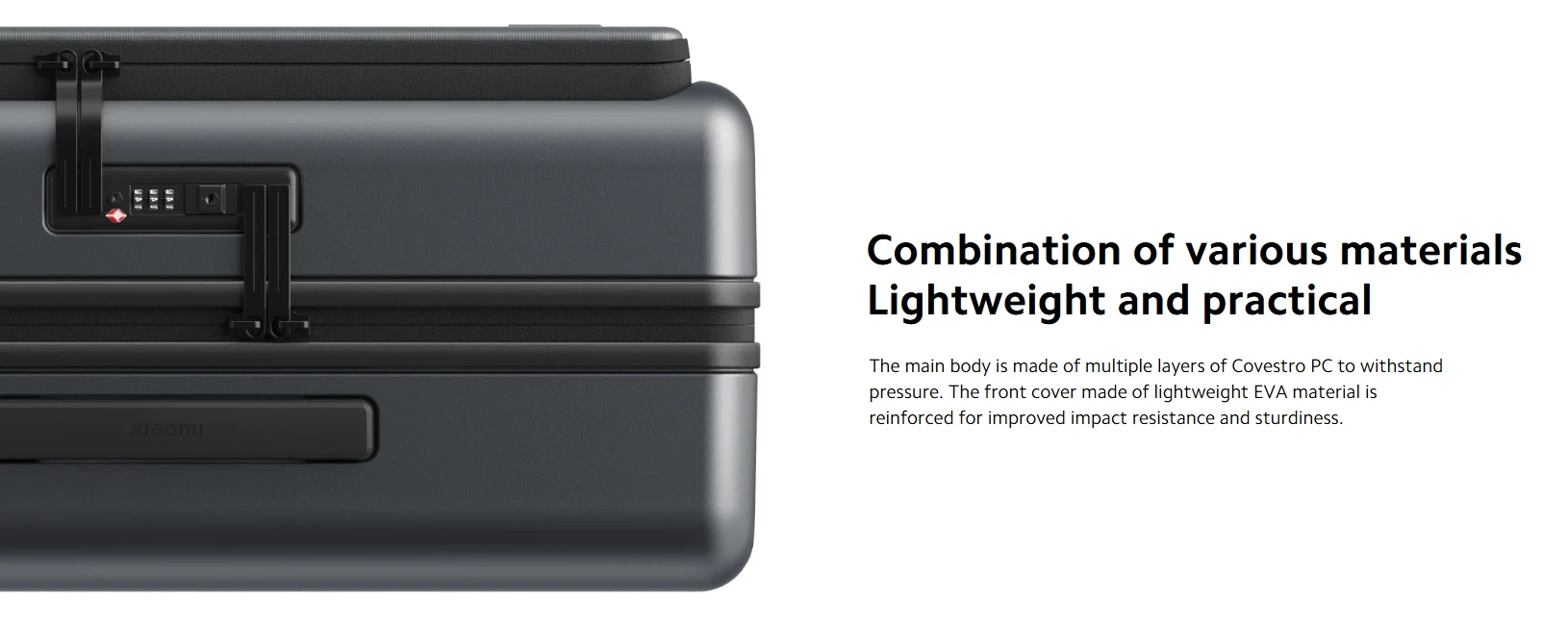 The main body is made of multiple layers of Covestro PC to withstand pressure. The front cover made of lightweight EVA material is reinforced for improved impact resistance and sturdiness.
